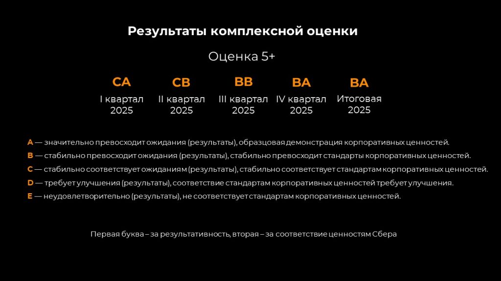 Меня мотивирует развитие компетенций и вклад в успех Сбера. Внутренняя нацеленность на помощь клиентам и желание занять руководящую должность стимулируют высокие достижения.