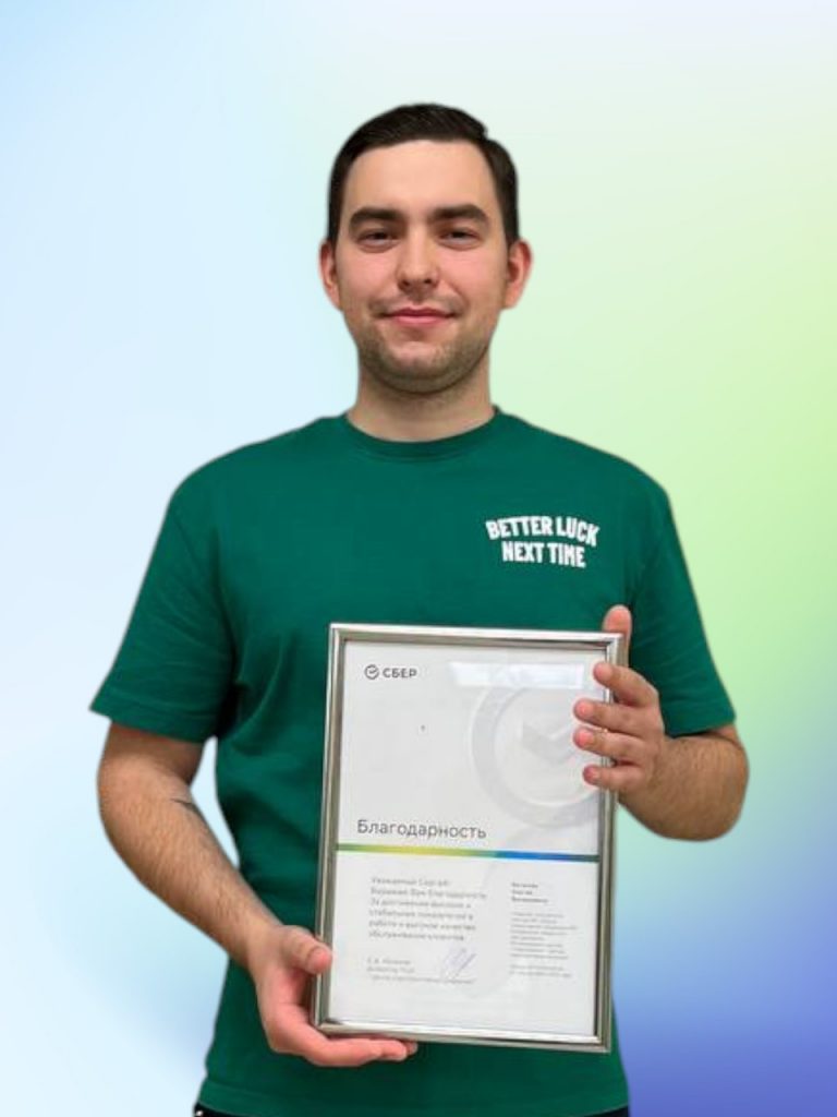 Я эксперт Центра корпоративных решений Сбера в Новосибирске, специализирующийся на решении сложных вопросов клиентов, которые не были решены после нескольких этапов общения с операторами контакт-центра. Моей задачей являются квалифицированное разрешение нестандартных ситуаций и поддержание высокого уровня удовлетворённости клиентов