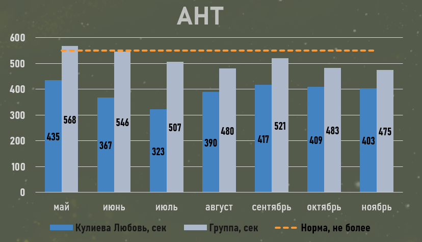 AHT. При норме не более 550 секунд я показываю значение в 390 секунд.