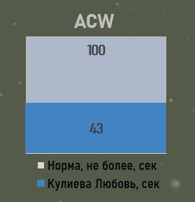 ACW. При норме не более 100 секунд, я успеваю закончить все действия за 43 секунды.