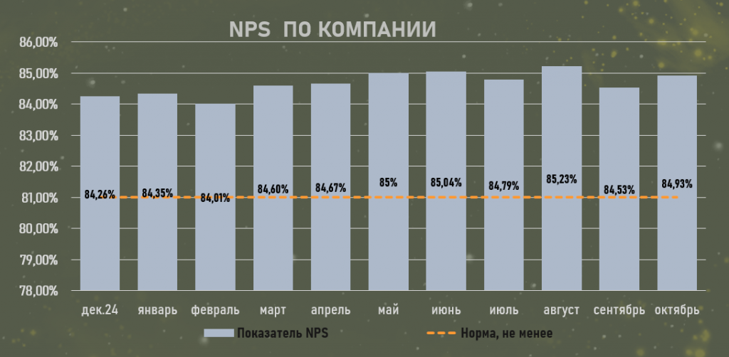 NPS. Измеряется по компании в общем, отражает вклад каждого сотрудника.