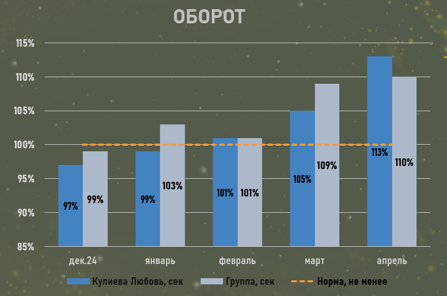 - Ежемесячно выполняю все ключевые KPI;