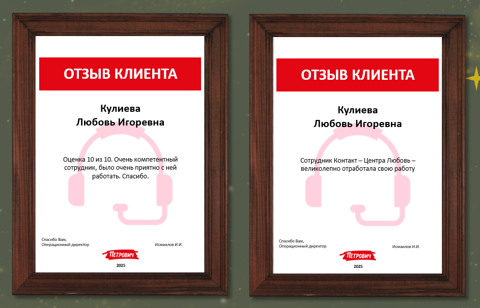 Меня зовут Любовь Кулиева, я работаю в Контакт-центре «Петровича» с 2022 года. Моя должность «Дистанционный менеджер отдела сопровождения продаж».