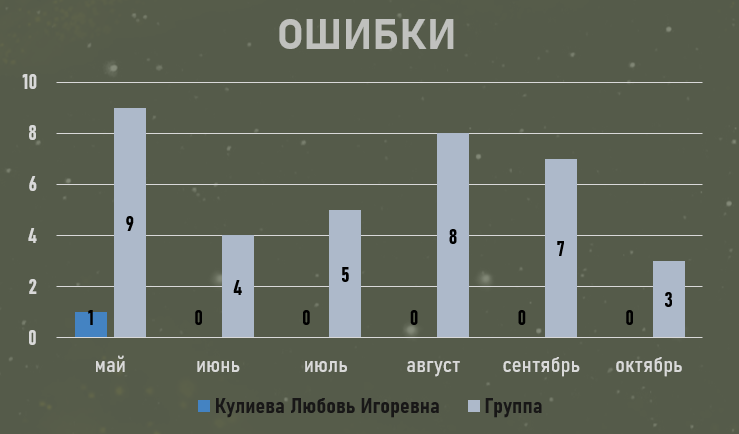 Количество ошибок. За период май — ноябрь я совершила 1 ошибку. Критерий оценки: не более 2-х ошибок за месяц.