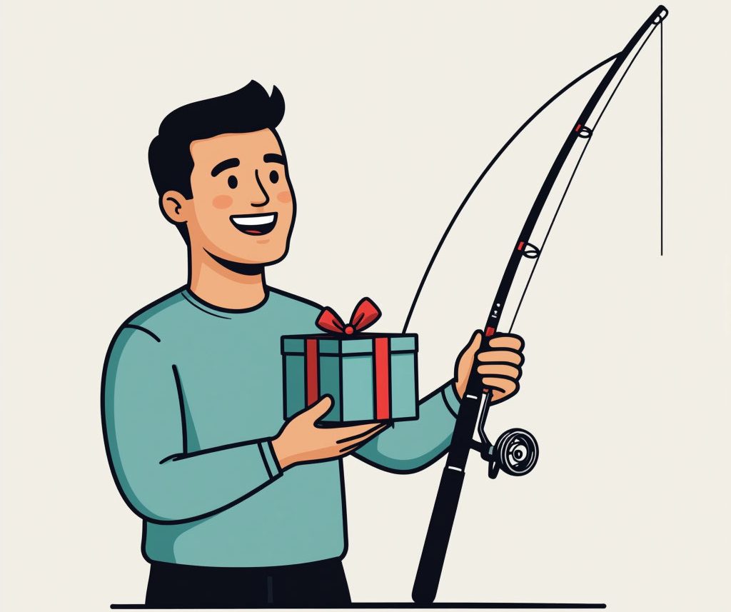 У клиента день рождения, и в прошлый раз он покупал снасти для рыбалки.
