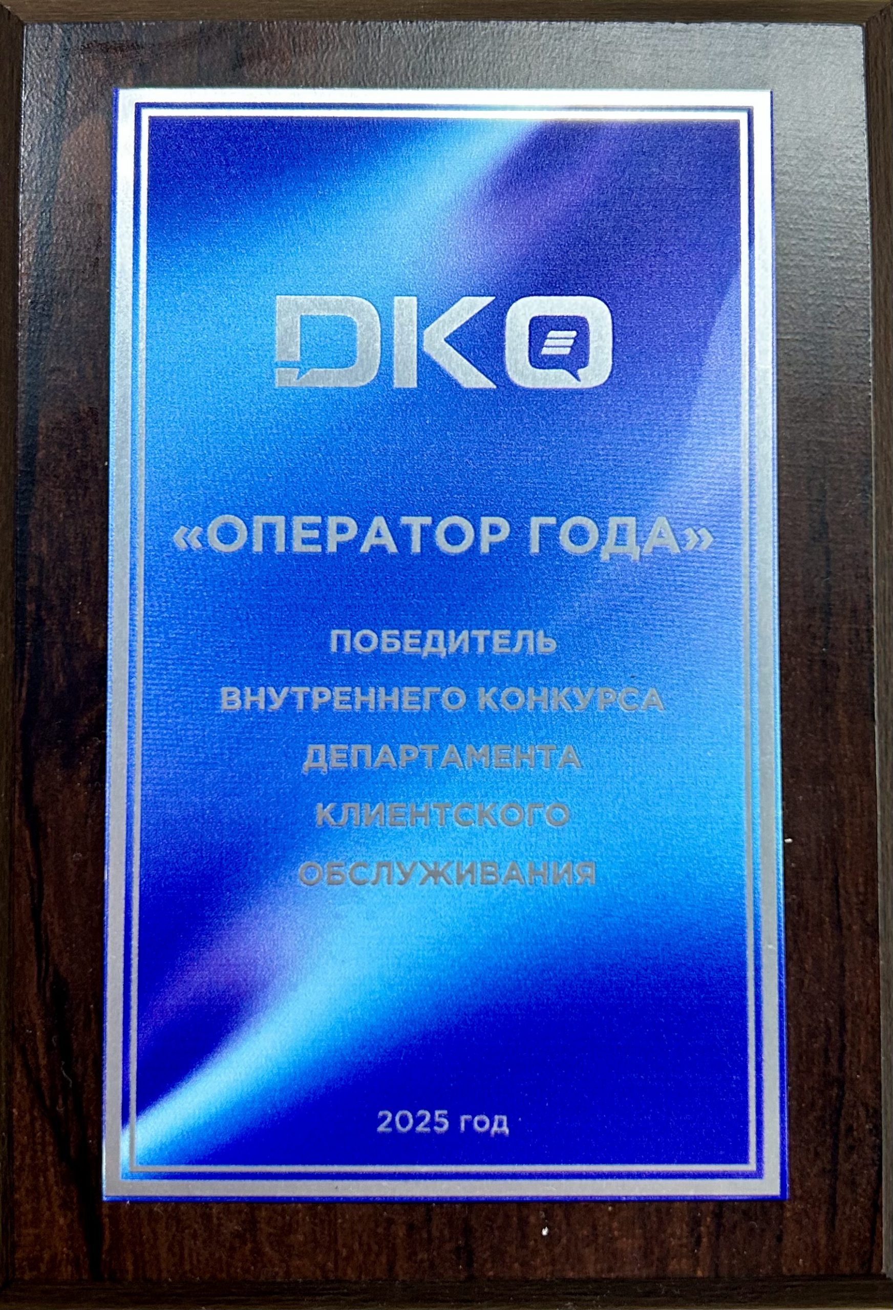 Победил во внутреннем конкурсе профессионального мастерства департамента клиентского обслуживания «Оператор года».